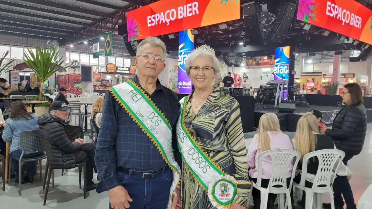 Entre os participantes estavam Inês e Jair Bonati, rei e rainha dos idosos de Chapecó, moradores do bairro Presidente Médici. Representando os 65 grupos do município, o casal comemorou o momento. “Nos sentimos lisonjeados pelo cargo que nos foi concedido. Fomos escolhidos pelos 65 grupos de idosos, e é uma grande satisfação representá-los”, contou Jair.