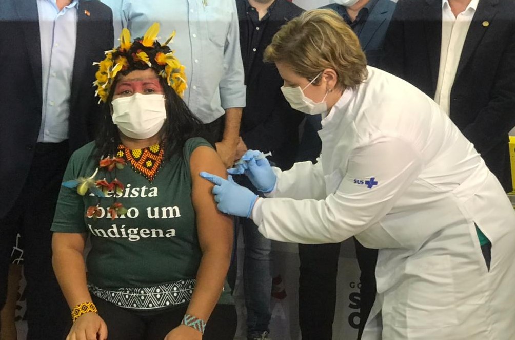 Kerexu Ixapyry foi a primeira indígena a ser vacinada em Santa Catarina. Kerexu, de 41 anos, é gestora ambiental e uma liderança da aldeia do Morro dos Cavalos. “Sensação de liberdade. Passamos um ano, que pareceu uma eternidade, presos. Quero agradecer as divindades, a ciência e a luta dos povos em trazer a vacina contra o coronavírus.”