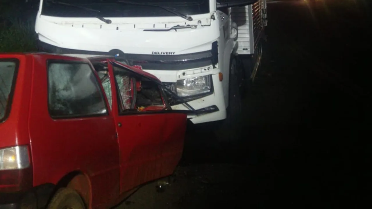 Um homem morreu após uma batida violenta entre um carro e um caminhão na SC-157, na cidade de Quilombo, no Oeste catarinense.