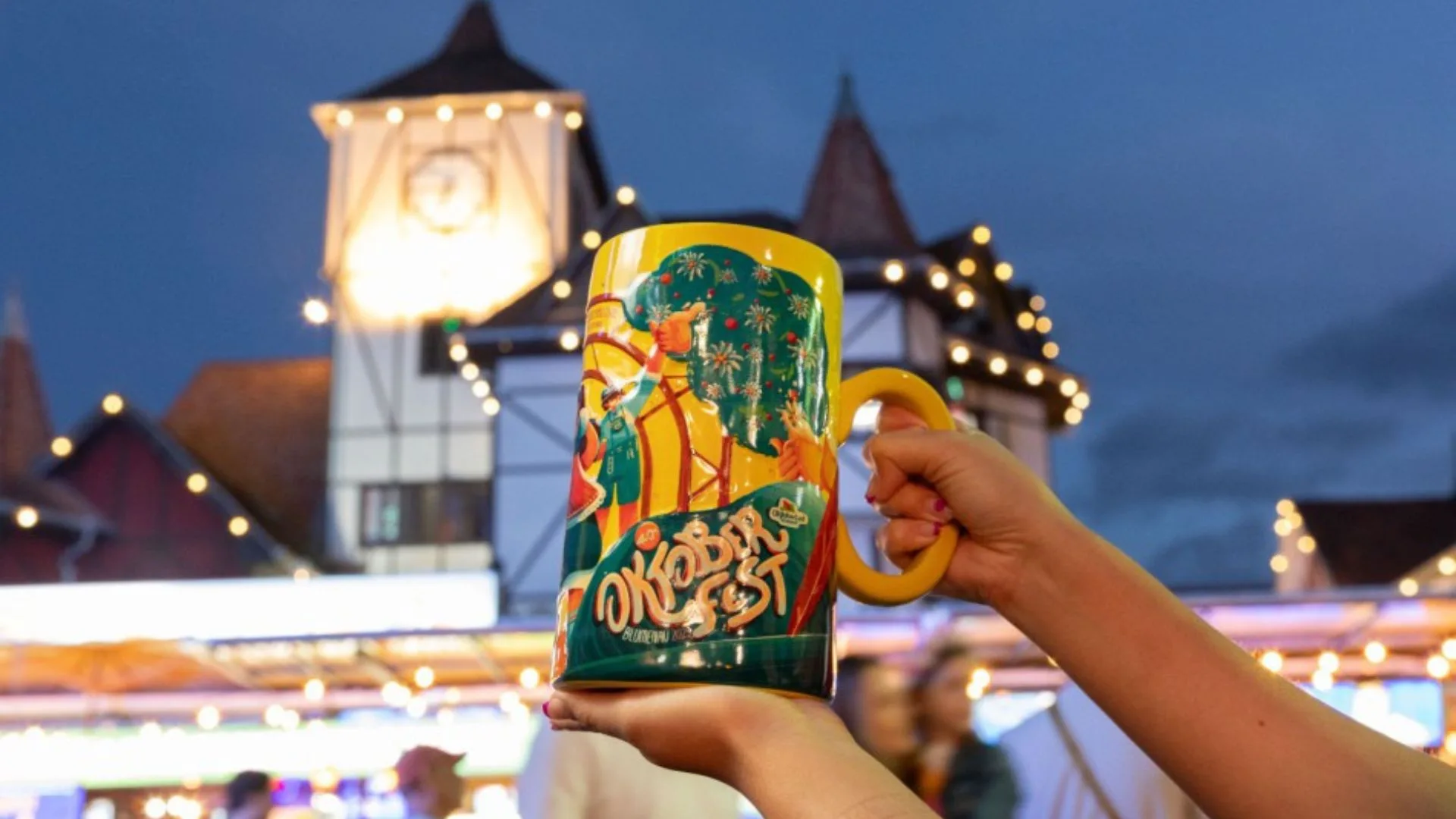 Tradicional item utilizado durante a festa, o caneco se tornou um dos principais símbolos da Oktoberfest Blumenau, representando a experiência do público e a ligação com a cultura germânica que marca o evento.