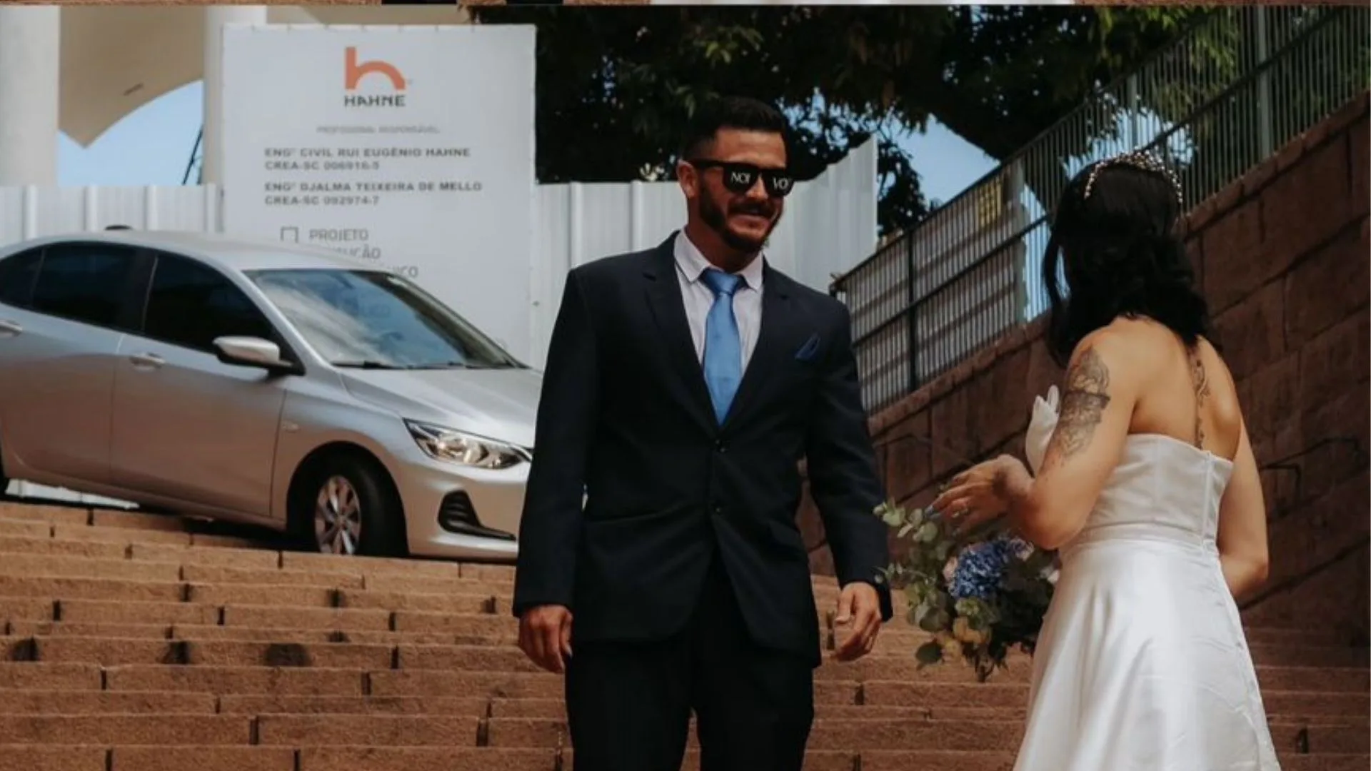As fotos de um casamento realizado no último domingo (11) terminou em susto e surpresa para um casal em Blumenau, no Vale do Itajaí. Enquanto os noivos faziam fotos na escadaria da Igreja Matriz, um carro tentou descer as escadas do local, cena inusitada que chamou a atenção de quem passava pelo ponto turístico.