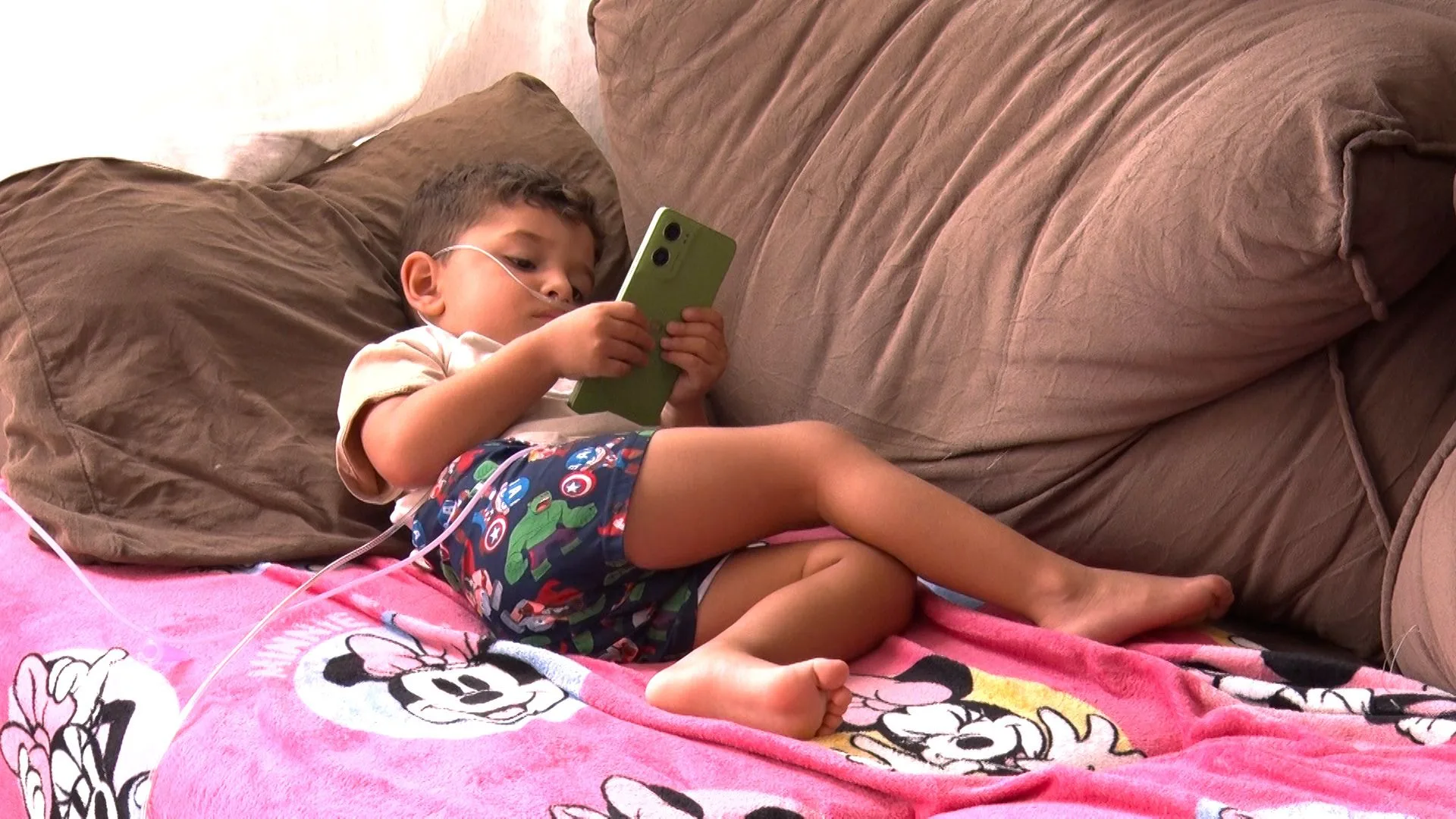 Segundo Carmen Scheilane Carneiro, mãe de Bernardo, ele passa mais de 20 horas deitado no sofá, já que a dor intensa não permite que ele passe muito tempo no colo ou brincando. “A gente tem um carrinho de bebê normal, que pra condição dele não é boa, só prejudica mais ele ainda. Porque como o Bernardo é hipotônico, ele sente muita dor muscular. Então, quanto mais tempo ele fica no colo, mais dores ele sente“.