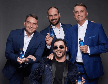 Jair Messias Bolsonaro e seus filhos, Flavio e Eduardo, participaram de uma campanha publicitária nessa quarta-feira (29) para divulgar o lançamento da nova fragrância de Bolsonaro, “Mito”.