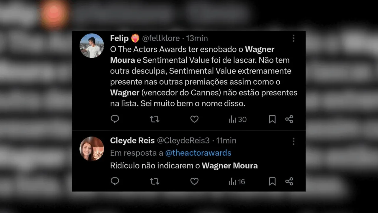 O ator Wagner Moura, protagoniza o filme “O Agente Secreto”, maior aposta nacional na temporada, segundo os críticos de cinema brasileiro, não recebeu nenhuma indicação no Actor Awards.