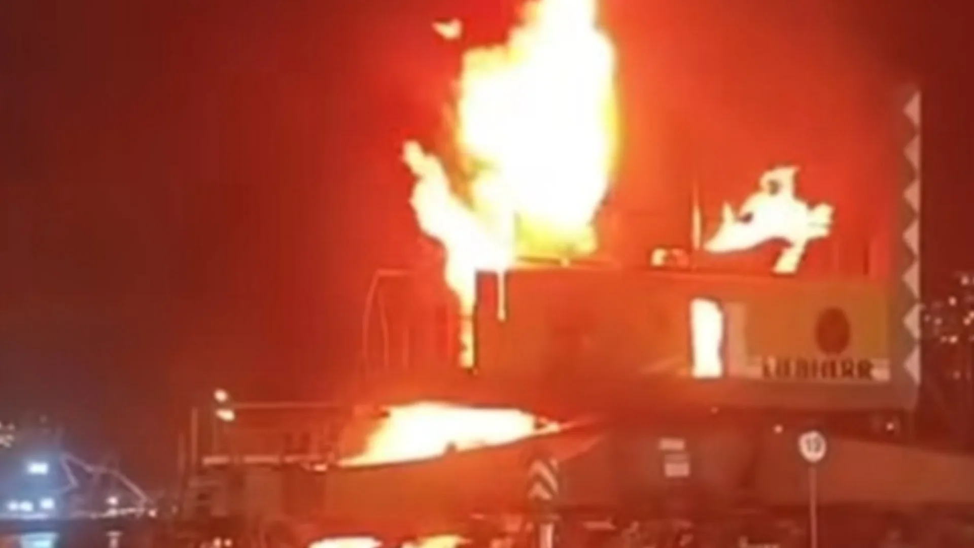 Fogo destrói guindaste em Porto de Itajaí; assista ao vídeo