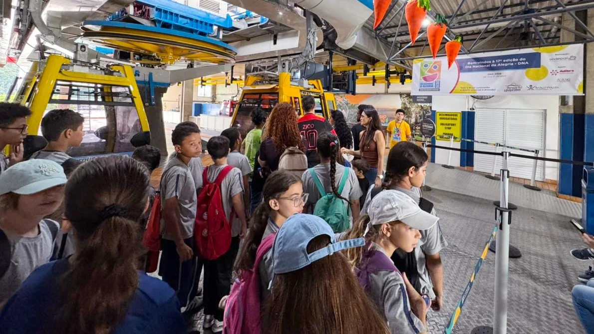Durante o evento, as crianças participaram de atividades recreativas e também puderam conhecer atrações do parque, como o passeio de bondinho aéreo, que liga a Praia Central à Praia de Laranjeiras e oferece vista da orla e da Mata Atlântica.