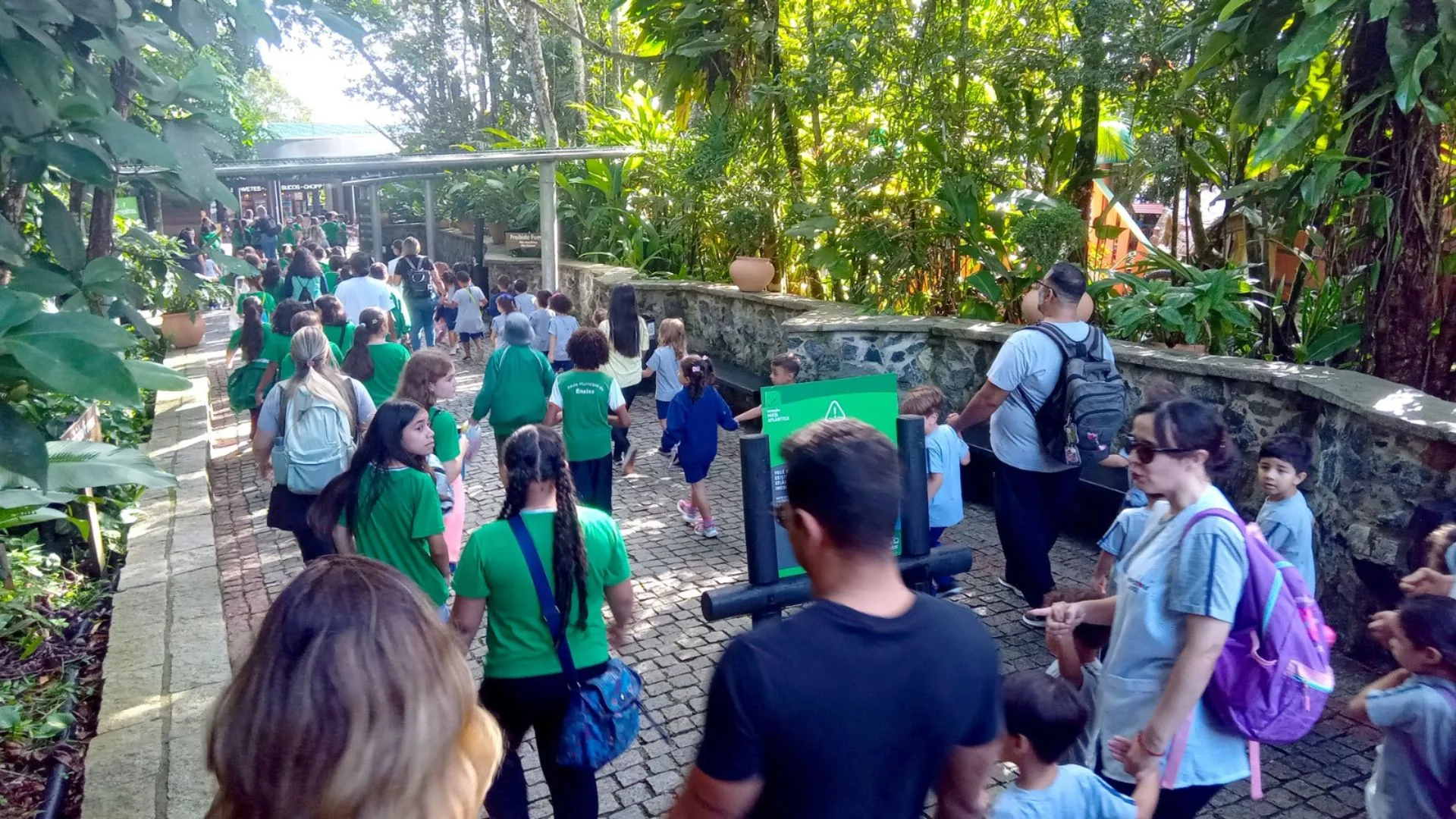 Além do passeio, os estudantes participaram de brincadeiras, apresentações e atividades organizadas por equipes de recreação ao longo do dia.