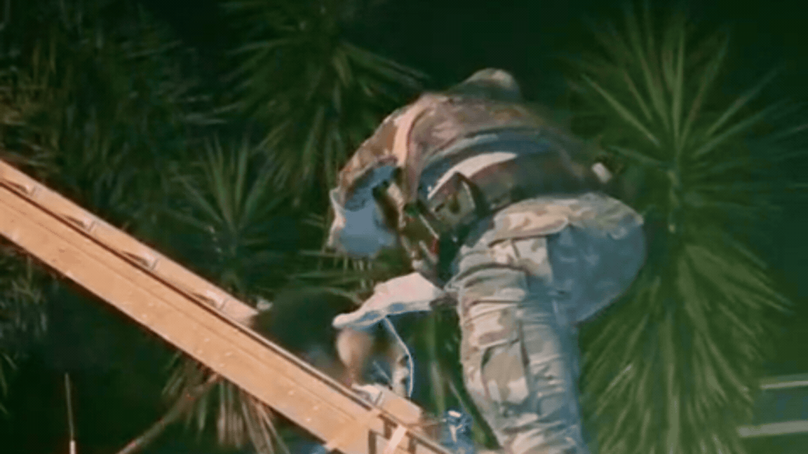 Após cerca de uma hora de tentativas, as equipes conseguiram realizar o resgate com o auxílio de uma escada