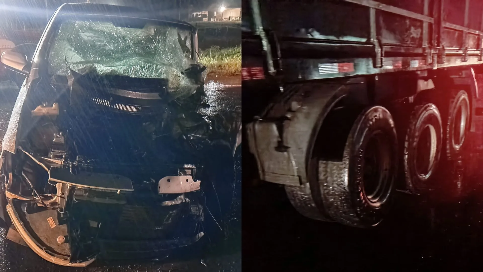 De acordo com os bombeiros, a ocorrência envolveu uma batida frontal entre um carro e um caminhão.