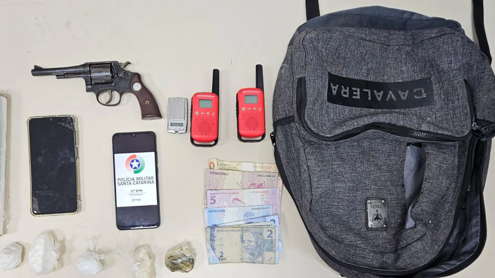 Com o adolescente, os policiais encontraram o revólver usado na ação, além de drogas, balanças de precisão e rádios comunicadores, o que reforça a suspeita de envolvimento com outras atividades criminosas.