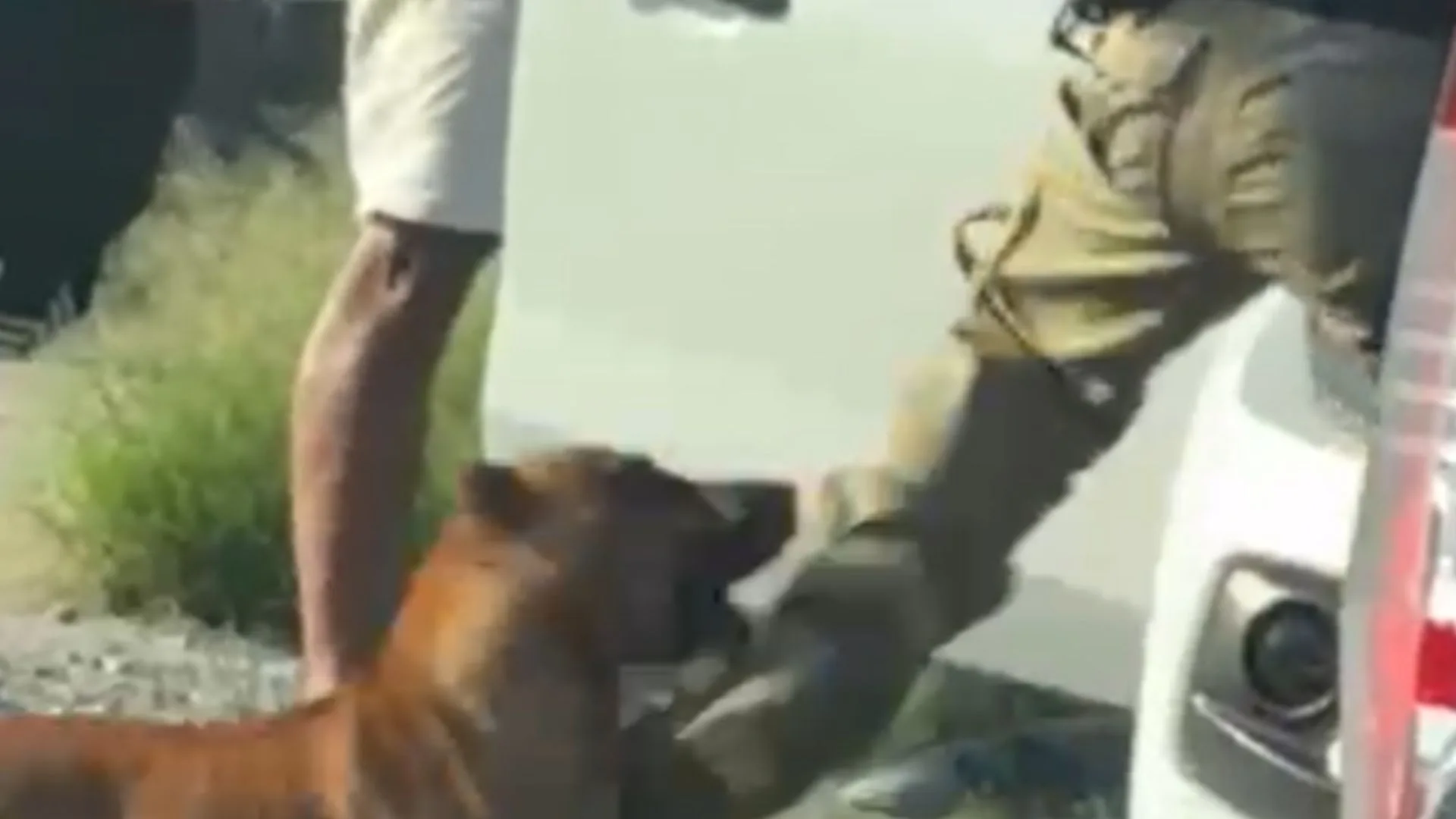 Os quatro abordados desceram do veículo e um deles já tinha tornozeleira eletrônica. Foi nesse momento em que um cachorro veio e avançou contra um dos policiais, que só não foi ferido graças à bota de proteção. O policial nesse momento disparou ao chão para afastar o animal, devida a situação de abordagem em que se encontrava. O cachorro, não foi ferido e foram feitos todos os procedimentos para a finalização da abordagem.