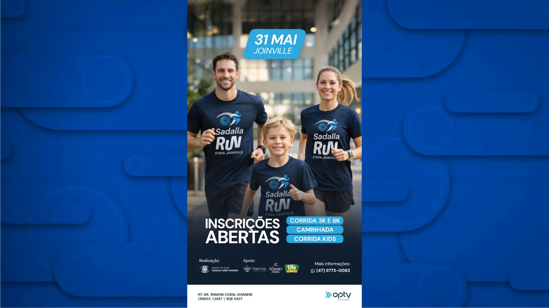 No dia 31 de maio, o Hospital de Olhos Sadalla Amin Ghanem, em Joinville, realizará a Sadalla Run, a primeira edição do evento oficial de corrida promovido pela instituição. A largada está prevista para às 7h, com saída e chegada no próprio hospital.
