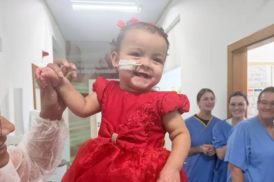 400 dias após nascer, a criança Ana Lara teve alta do Hospital Materno-Infantil Santa Catarina (Hmisc), em Criciúma, e foi para casa na quarta-feira (28).