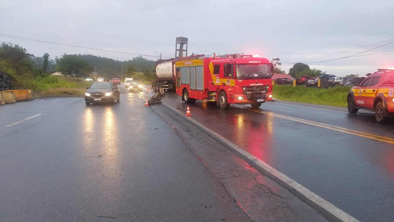 Uma pessoa morreu após uma colisão frontal entre uma motocicleta e uma carreta na madrugada deste domingo (11), por volta das 5h21, na BR-470, no bairro Badenfurt, em Blumenau, no Vale do Itajaí.