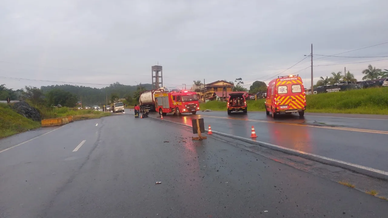Acidente entre motocicleta e carreta deixa uma pessoa morta na BR-470 em SC