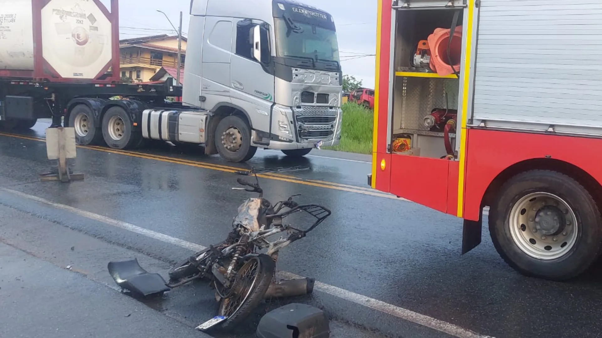 Acidente entre motocicleta e carreta deixa uma pessoa morta na BR-470 em SC