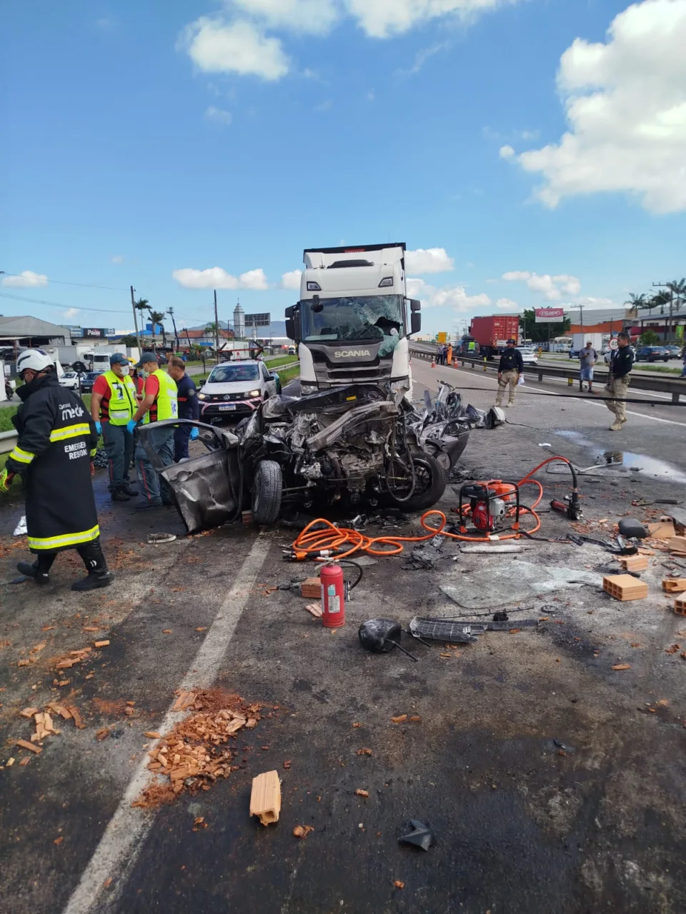 Além dos bombeiros, atuaram na ocorrência a Polícia Rodoviária Federal (PRF), a equipe do Arcanjo 03, e guarnições do ASU 513 e a concessionária responsável pela rodovia. O Instituto Médico Legal (IML) e a Polícia Científica foram acionados para os procedimentos de perícia.