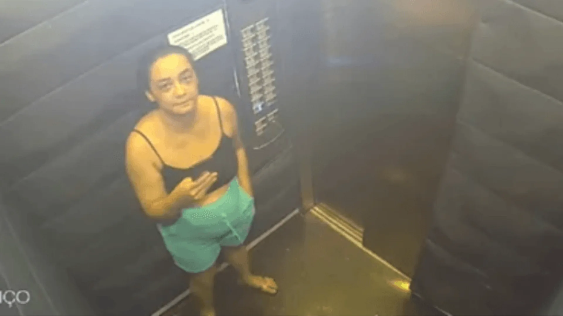 Imagens do sistema de segurança mostram Daiane entrando no elevador do edifício, do qual era proprietária de alguns apartamentos. Esse é o último registro conhecido da corretora antes do desaparecimento.