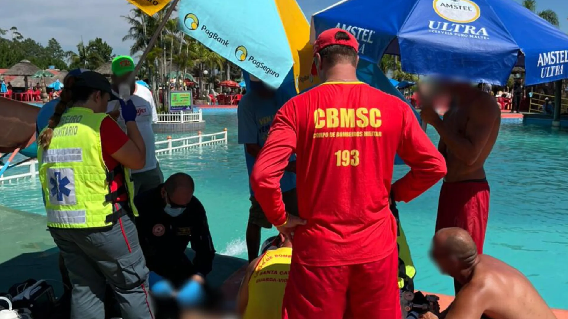 O funcionário estava submerso na piscina e foi retirado pelos colegas de trabalho. As Manobras de Ressuscitação Cardiopulmonar (RCP) foram iniciadas pelos guarda-vidas que atuam no parque aquático e pela guarnição da Praia do Morro dos Conventos.