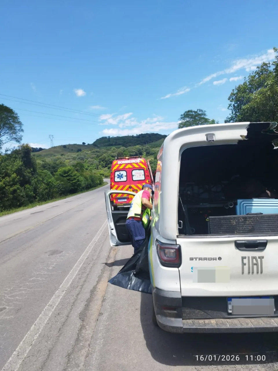 A guarnição do Bombeiros de Campos Novos foi acionada às 10h33 para atender um homem desmaiado dentro de um Fiat Strada branco, que estava parado no acostamento da rodovia. Ao chegar, os bombeiros constataram a morte.