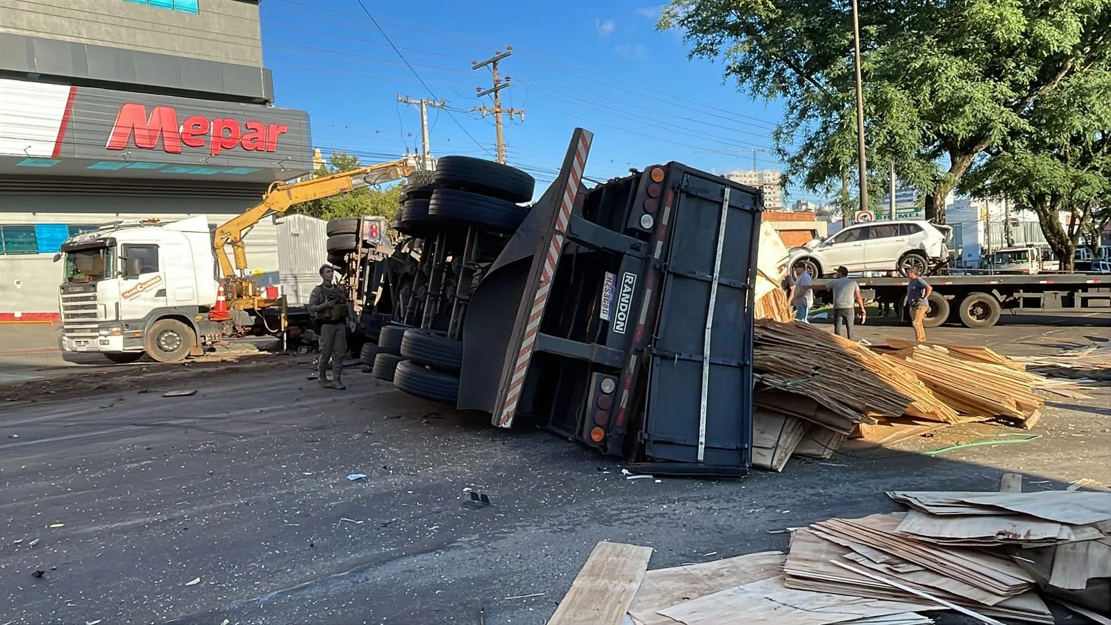 Segundo o Corpo de Bombeiros Militar (CBMSC), um caminhão carregado com compensados de madeira colidiu contra os veículos que trafegavam pela via.