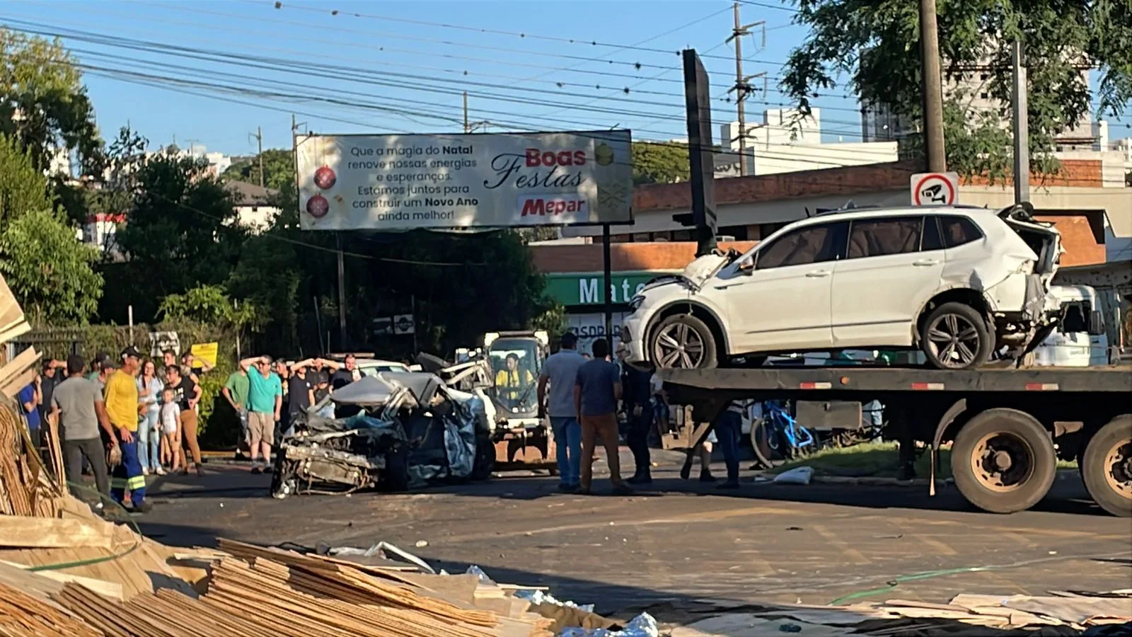 Imagens impressionantes mostram os rastros de destruição após um grave acidente registrado na tarde desta sexta-feira (30) em Chapecó, no Oeste de Santa Catarina. De acordo com informações das equipes de resgate, 11 veículos se envolveram em uma colisão na Avenida Fernando Machado, no bairro Bela Vista, por volta das 15h19.