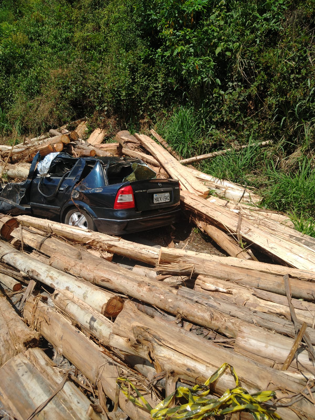 Motorista morre após toras de madeiras caírem em cima de carro em Brusque