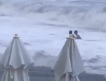 Veja vídeo do momento que a mulher desaparece ao ser arrastada pelo mar: