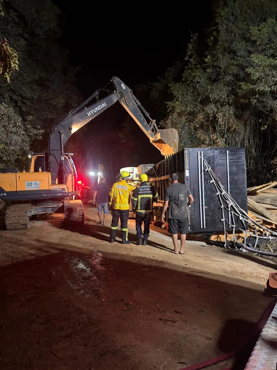 Uma mulher grávida e o companheiro morreram após um caminhão carregado com tábuas de madeira tombar sobre o carro em que estavam, na tarde deste domingo (22), na SC-435, em São Bonifácio, na Grande Florianópolis.