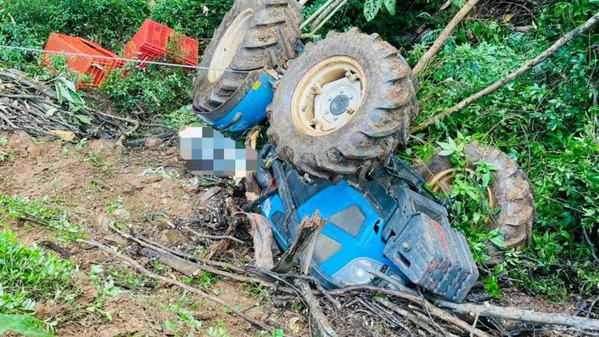 Acidente ocorreu em uma estrada rural no interior do estado; Vítima conduzia o veículo agrícola quando saiu da pista e capotou em um barranco