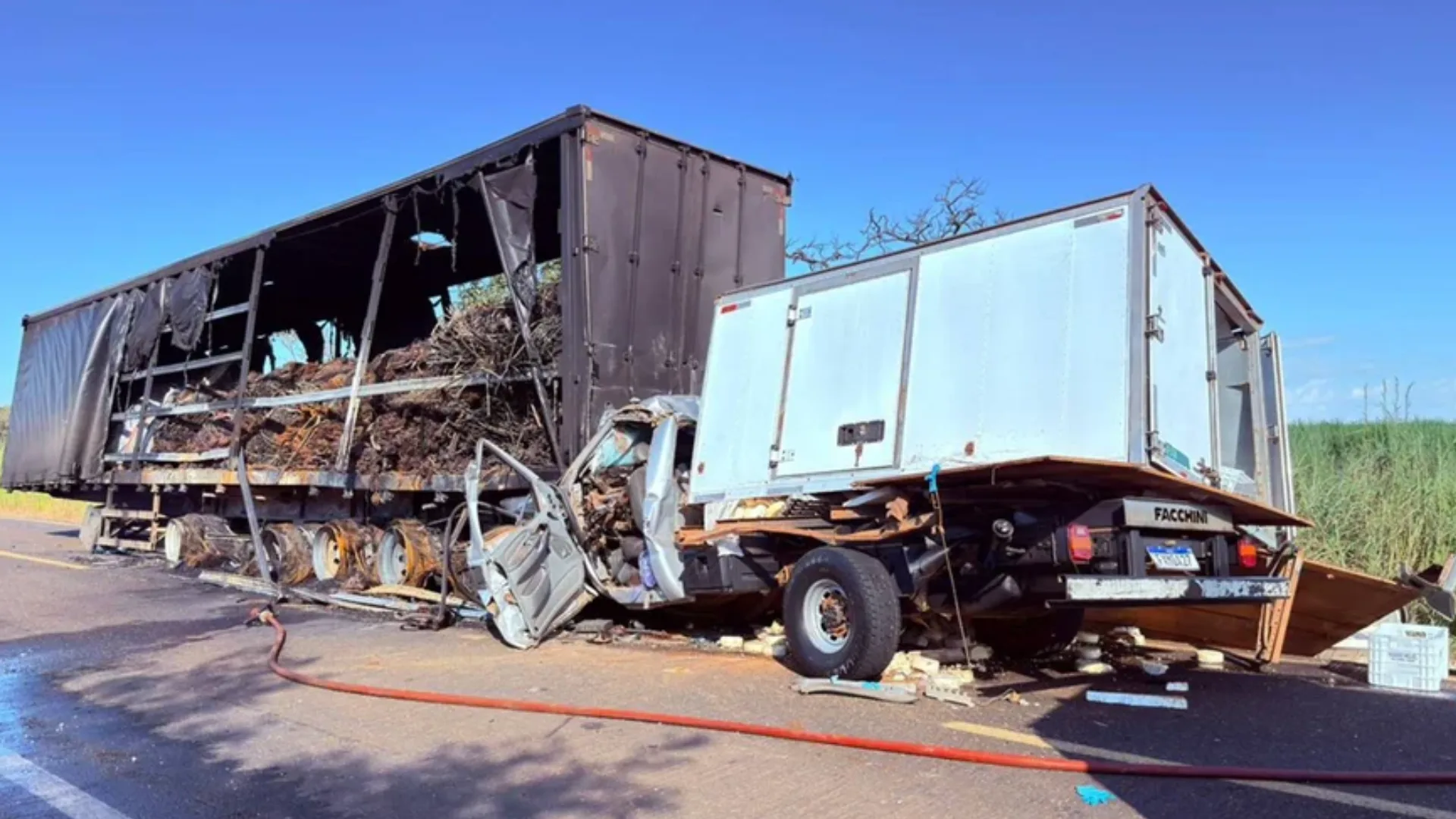 Pai e filho morrem após colisão com caminhão em chamas