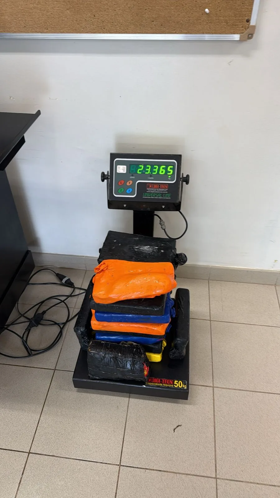 A droga foi localizada após a identificação de um material suspeito no casco da tubulação de refrigeração do navio. O material ilícito foi retirado e submetido a testes preliminares, que confirmaram se tratar de cocaína.