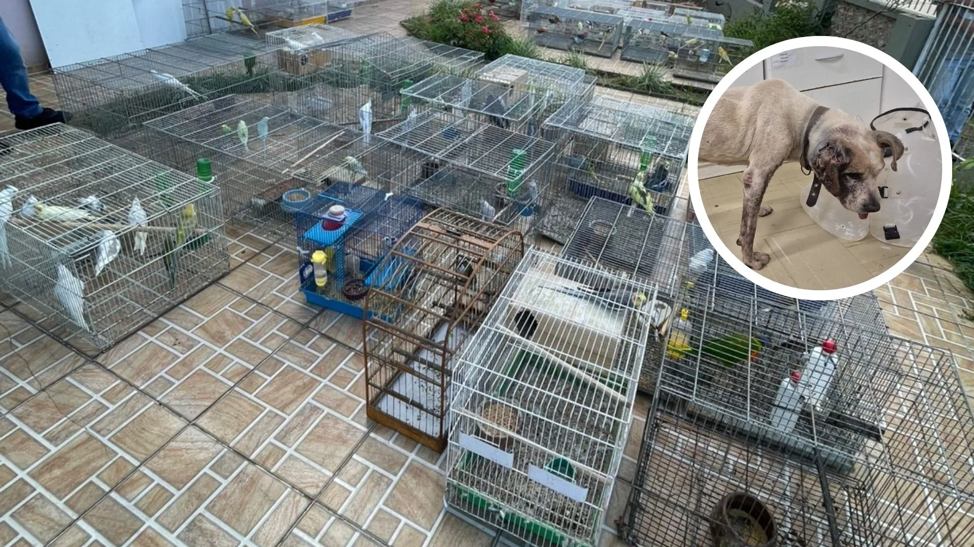 Entre os animais estavam 198 aves exóticas, 30 aves silvestres nativas, algumas sem anilhas de identificação, além de 8 coelhos, 8 hamsters e 1 codorna. As aves eram mantidas em gaiolas superlotadas, sujas e sem condições mínimas de higiene.