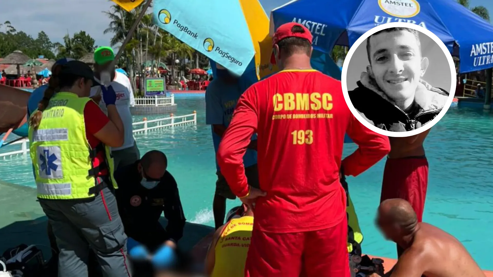 Pablo estava submerso na piscina e foi retirado pelos colegas de trabalho. As Manobras de Ressuscitação Cardiopulmonar (RCP) foram iniciadas pelos guarda-vidas que atuam no parque aquático e pela guarnição da Praia do Morro dos Conventos.