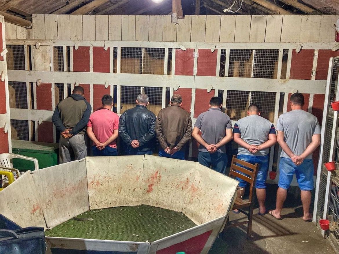 Sete homens foram detidos enquanto participavam de uma rinha de galo, em São José, na Grande Florianópolis. O flagrante da Polícia Militar Ambiental (PMA) aconteceu na madrugada de sexta-feira (14), no bairro Forquilhas. No galpão foram localizados mais de 150 galos em situação de maus-tratos.