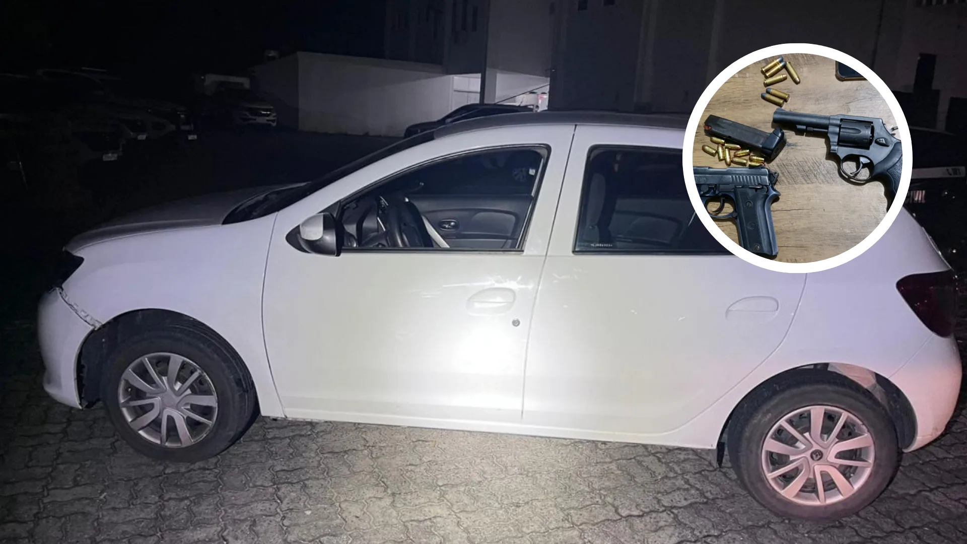 O Renault Sandero foi localizado posteriormente por guarnições de rádio patrulha. Segundo a PM, o carro havia sido roubado de um motorista de aplicativo, que relatou ter sido detido pelo segundo homem detido, na Rua Ronald Martin Dedekind, bairro Adhemar Garcia, por volta das 19h27.