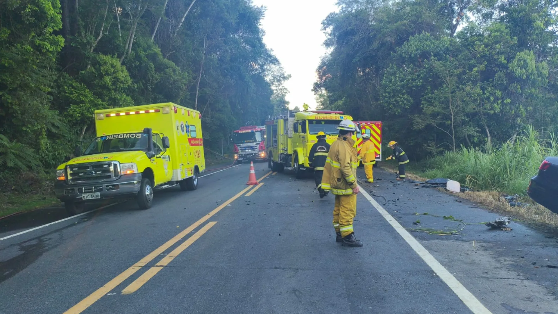 De acordo com os Bombeiros Voluntários de Indaial, a colisão envolveu três veículos. Um dos carros, um Fiat Uno, pegou fogo após o impacto. Duas pessoas que estavam no veículo morreram carbonizadas.