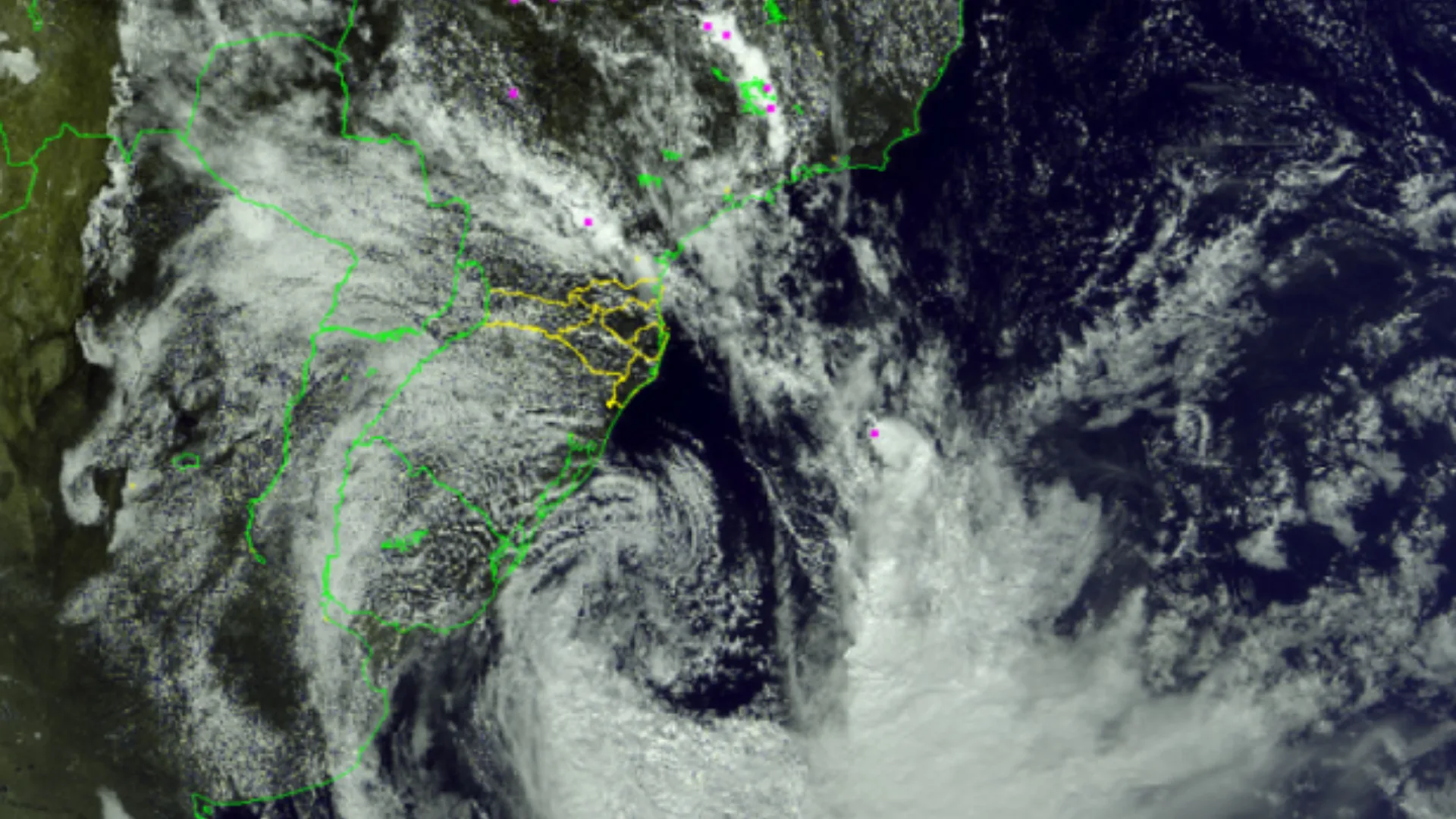 Segundo a Defesa Civil, atuação do ciclone, combinada à aproximação de uma massa de ar seco e frio pelo continente, intensifica os ventos de sul e sudoeste.