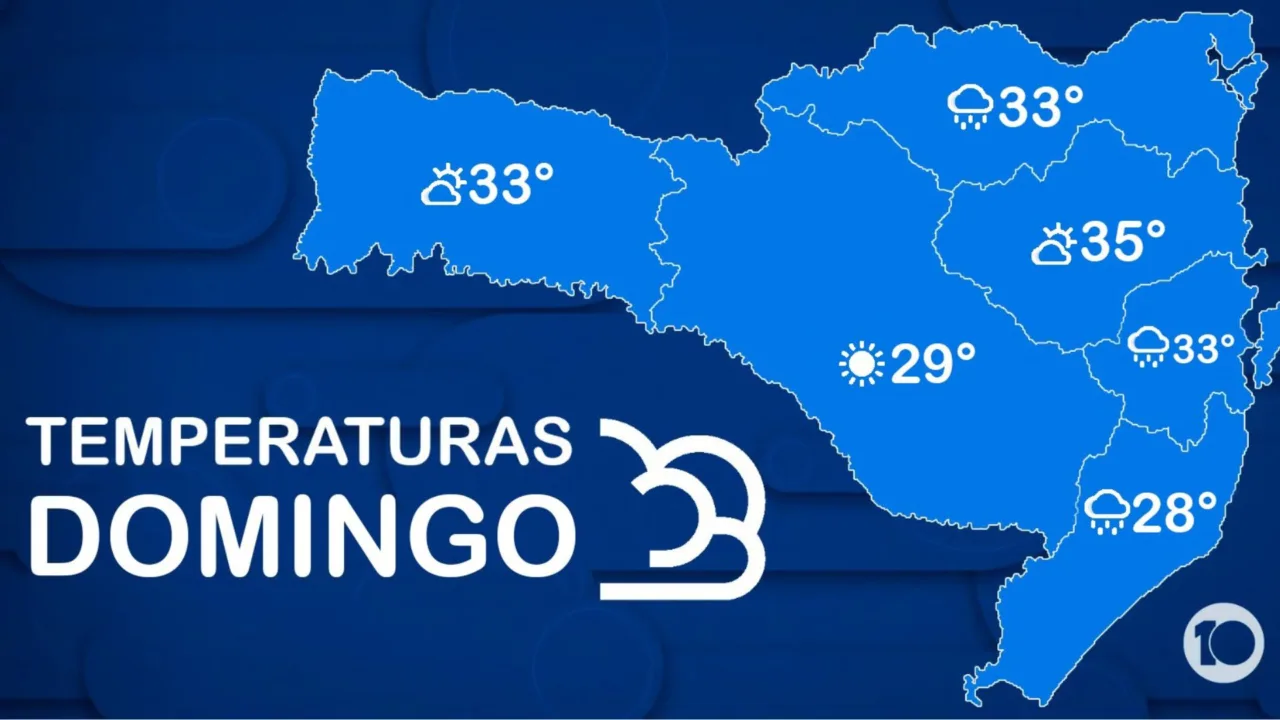 Já no domingo (1º), o calor e a umidade favorecem novos temporais isolados no litoral e no Vale do Itajaí. As temperaturas sobem, podendo ultrapassar os 30°C no Extremo Oeste, Litoral Sul e Vale, enquanto nas demais regiões ficam entre 20°C e 26°C. Apesar do aquecimento, o risco para ocorrências é considerado baixo.