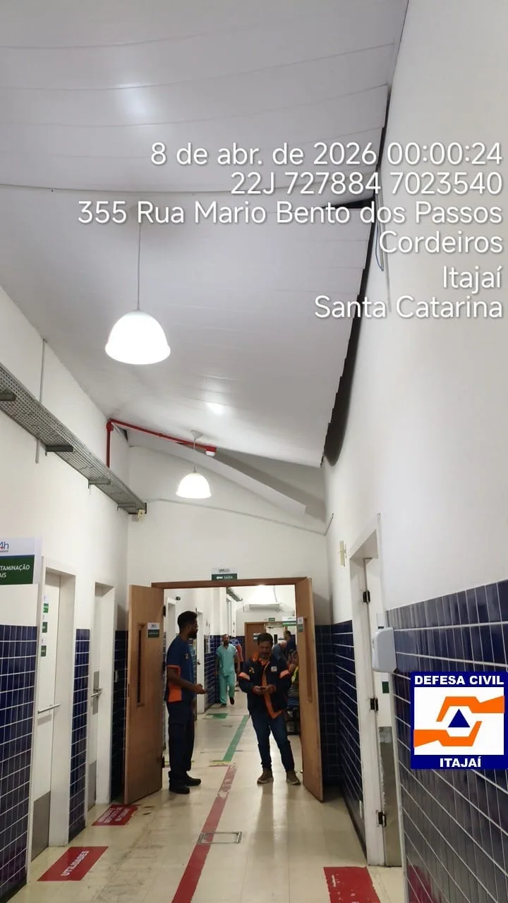 Uma Unidade de Pronto Atendimento (UPA) 24h, localizada no bairro Cordeiros, em Itajaí, teve o teto danificado durante o temporal registrado na noite desta terça-feira (7). De acordo com a Prefeitura de Itajaí, o município registrou 12,2 milímetros de chuva entre 22h50 e 23h30.