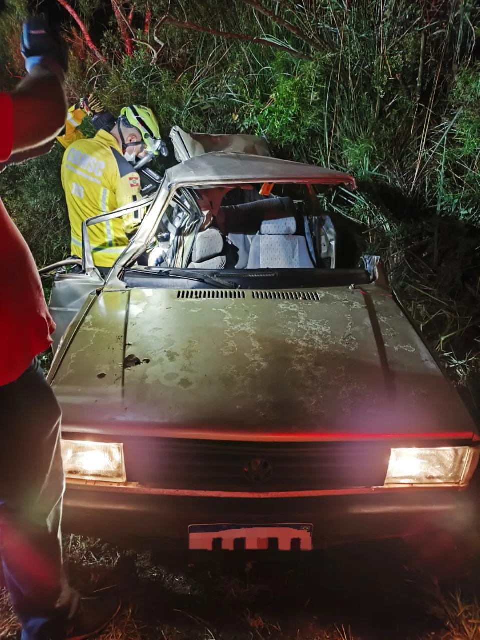 Segundo o Corpo de Bombeiros, no carro estavam três ocupantes. O motorista foi socorrido com vida e atendido pelo SAMU. Já os outros dois passageiros, uma mulher e um menor de idade, ficaram presos às ferragens e morreram ainda no local.