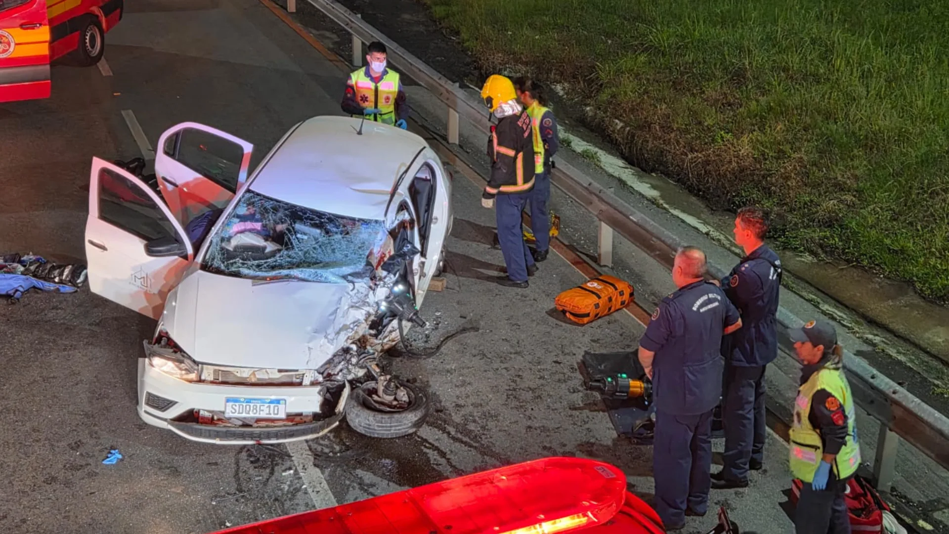 De acordo com o Corpo de Bombeiros Militar de Santa Catarina (CBMSC), o acidente aconteceu por volta das 5h24, no km 20 da rodovia, na altura do bairro Alto Aririú, e envolveu um VW Gol e um Ford EcoSport.