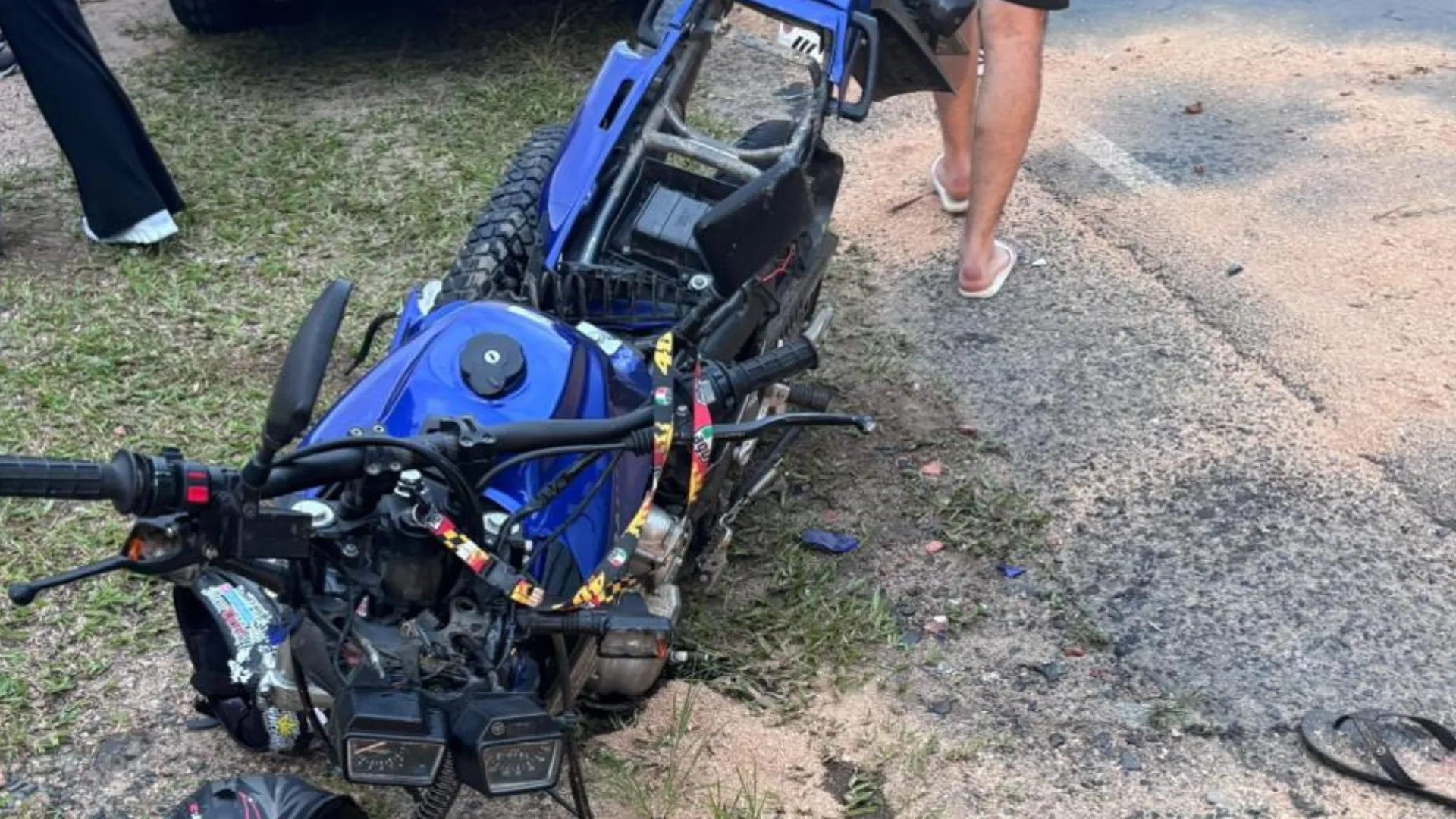 O acidente envolveu uma motocicleta Yamaha XT 600 E e um automóvel Chevrolet Cruze LT.
