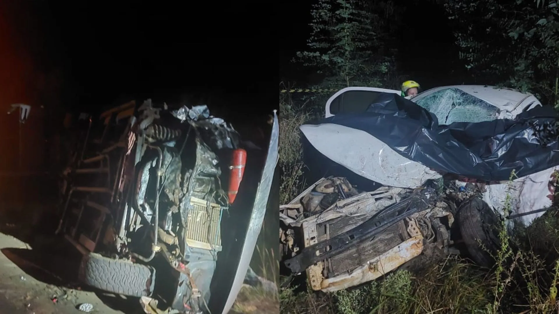 A colisão frontal envolveu um carro e uma caminhonete, deixando ainda três pessoas gravemente feridas.
