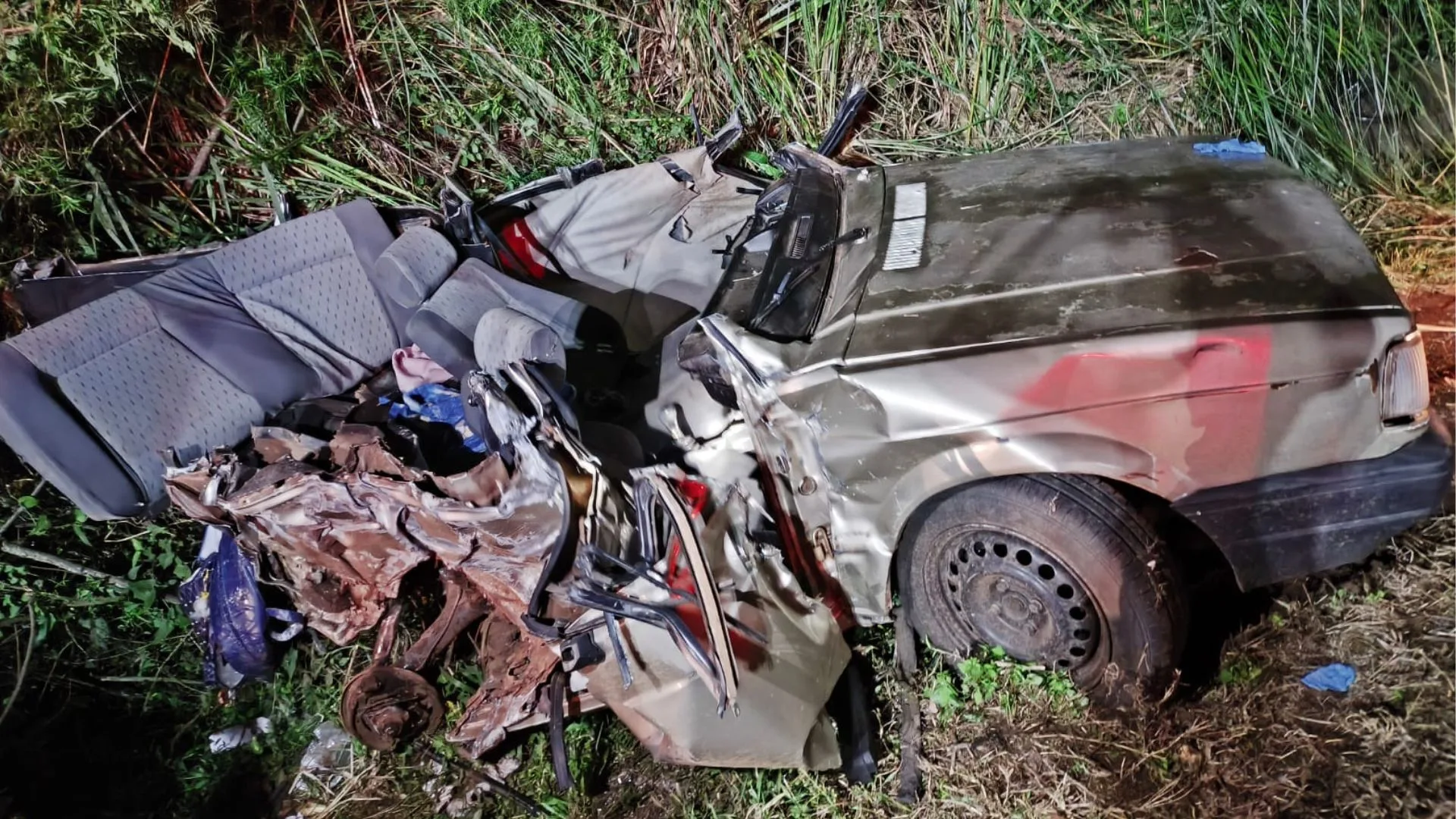 No carro de passeio, um Toyota Etios, estavam duas pessoas idosas que ficaram presas dentro do veículo após o impacto. Durante o atendimento, os socorristas constataram que um dos ocupantes, um homem, já estava sem vida. A outra vítima, uma mulher, estava consciente, porém com sinais de ferimentos no rosto e dificuldade para respirar.