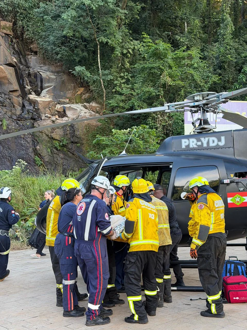 Durante a operação, a equipe médica do SAMU/SAER iniciou atendimento assim que o braço direito do motorista foi liberado. Ao liberar a perna esquerda, foi constatada fratura exposta na tíbia e fíbula, com hemorragia intensa, controlada de imediato com torniquete.
