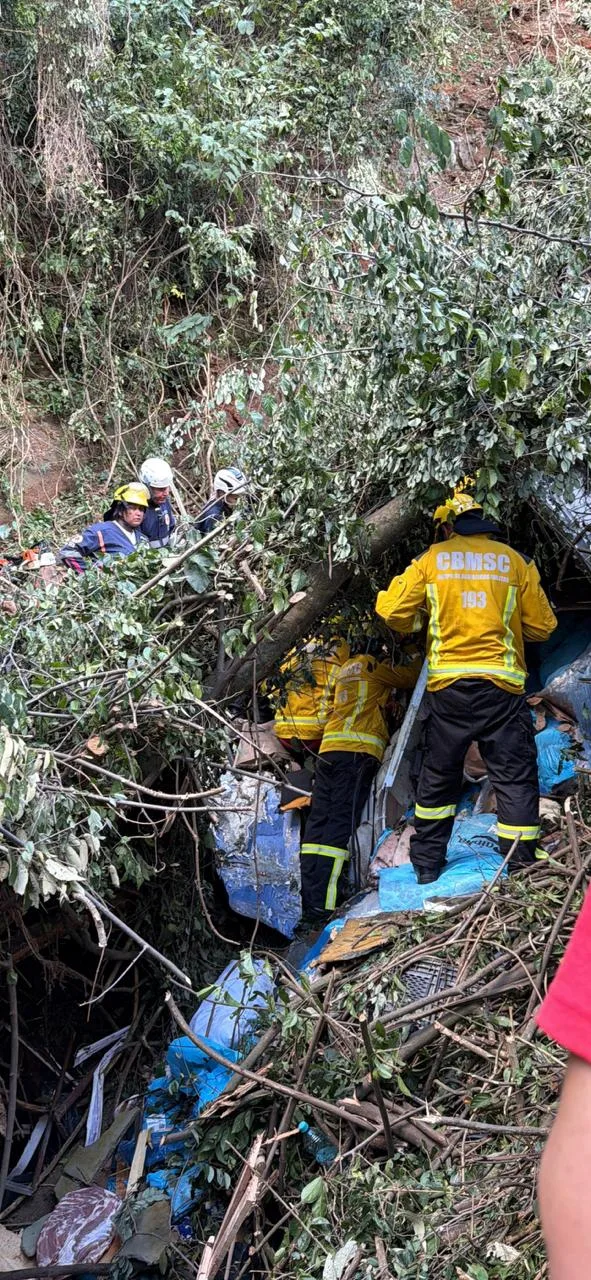 O motorista do caminhão ficou com o braço e a perna esquerdos presos, sem contato visual com as equipes, comunicando-se apenas por voz. O resgate exigiu mais de cinco horas de trabalho intenso, utilizando serra sabre, tesoura hidráulica, cilindro, cinta catraca, motosserra e outras ferramentas especializadas para acessar a vítima.