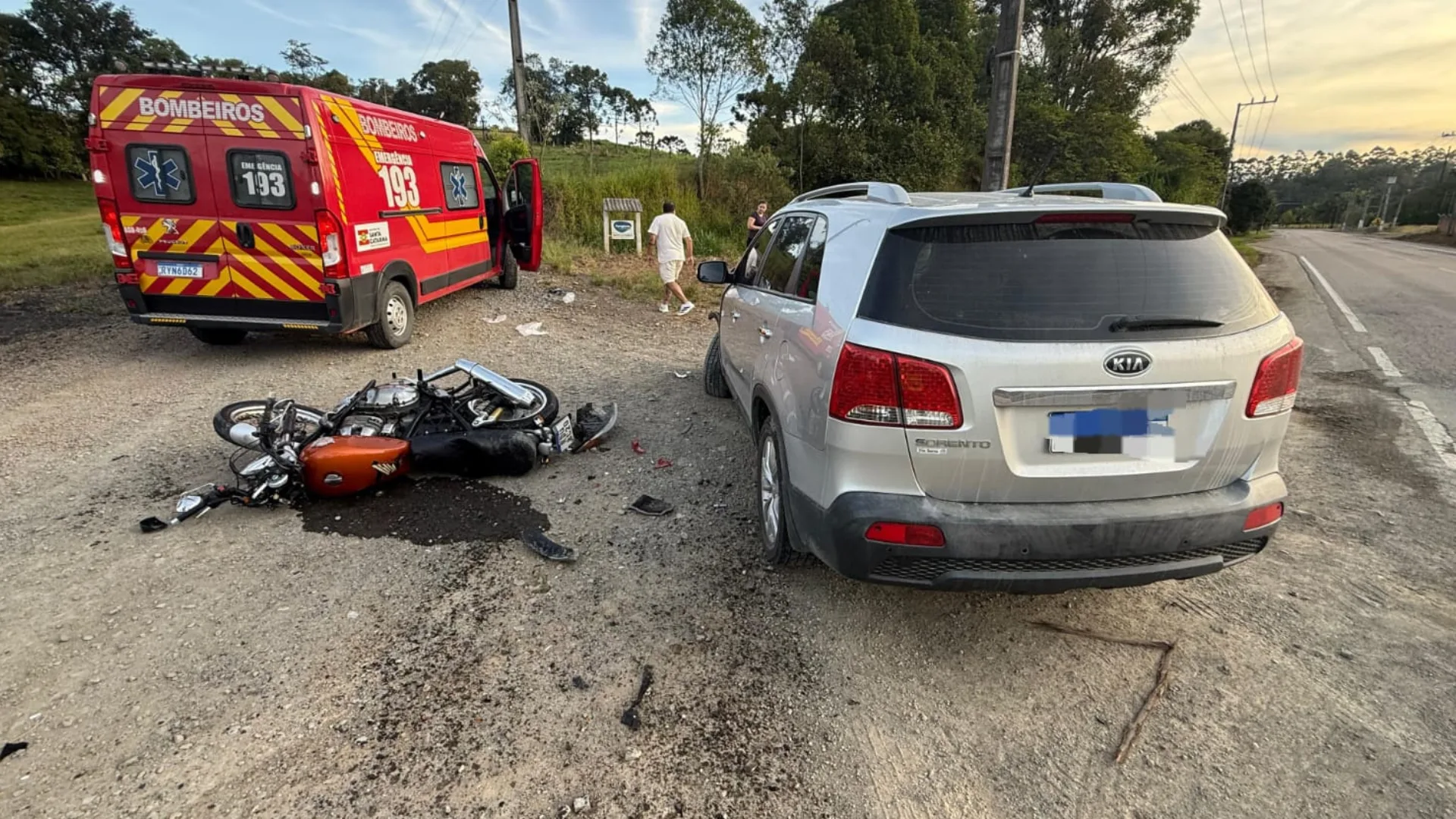 Um motociclista de 20 anos ficou gravemente ferido após uma colisão com um carro na tarde desta quarta-feira (15), na SC-281, em Trombudo Central, no Alto Vale do Itajaí. O acidente ocorreu por volta das 17h12, no km 10 da rodovia, próximo ao Parque de Exposição.