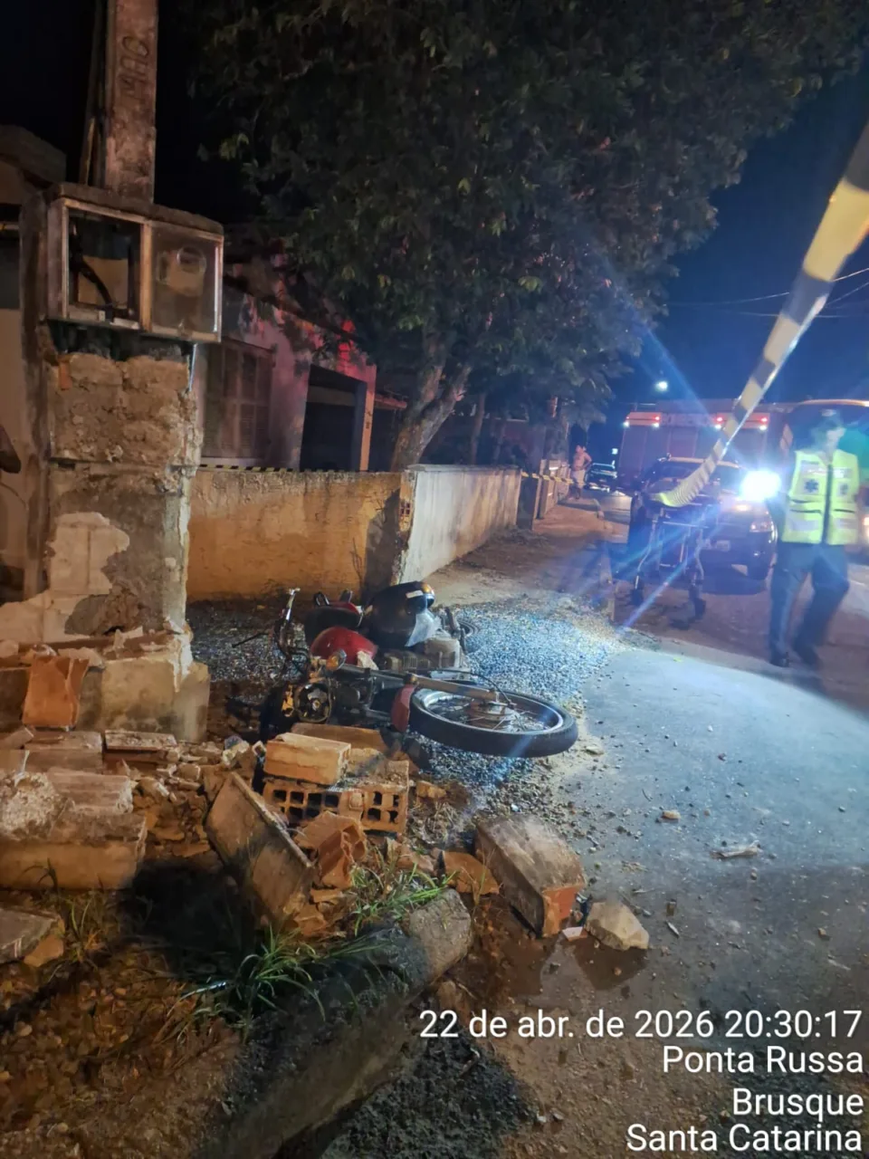 Um motociclista de 38 anos morreu após um grave acidente na noite desta quarta-feira (22), na rua Ponta Russa, no bairro Ponta Russa, em Brusque, no Vale do Itajaí.