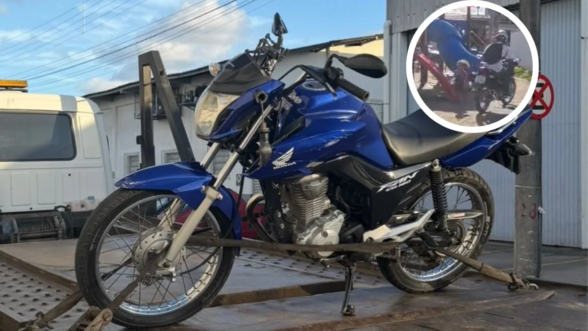 Conforme a Polícia Militar (PM), os policiais visualizaram o suspeito conduzindo uma motocicleta Honda Start 160, veículo já conhecido no meio policial por circular com descarga livre, causando perturbação, e por fugir reiteradas vezes de abordagens. A placa da moto também já estava registrada, acumulando aproximadamente R$ 7.400,00 em débitos.